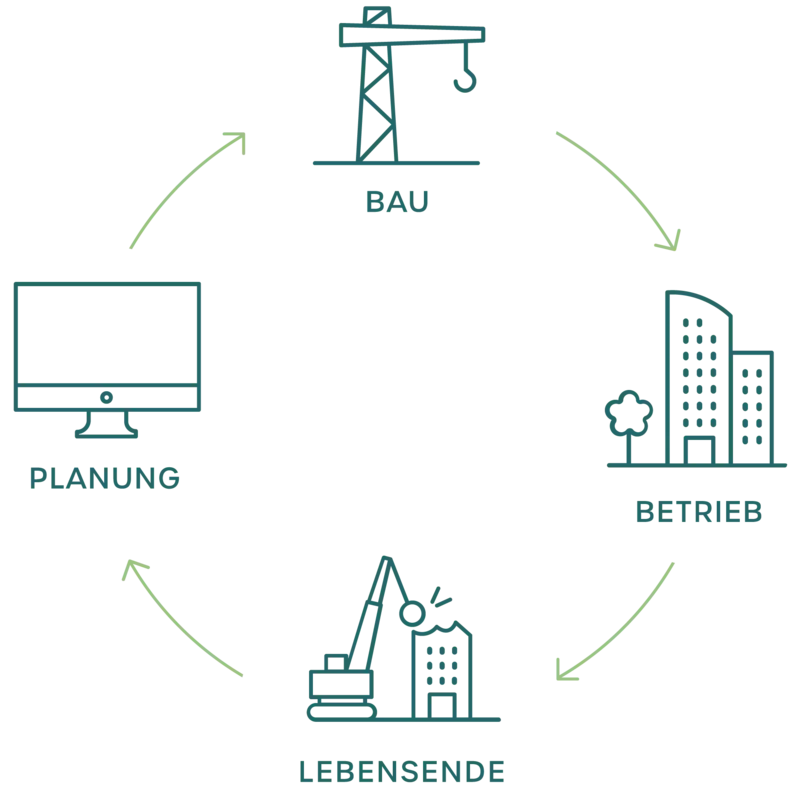 GUTGRÜN betrachtet den gesamten Lebenszyklus einer Immobilie mit allen relevanten Faktoren. Eine sinnvolle, umgebungskonforme und sozialverträgliche Nutzung steht bei der strategischen Planung im Zentrum. Bei Planung, Bau und Betrieb berücksichtigt GUTGRÜN die Umweltwirkung der Materialien und deren Auswirkungen auf Raumklima, Bewirtschaftung und Wertentwicklung genauso wie die Zirkularitätsfähigkeit und der schonende Umgang mit Ressourcen.
